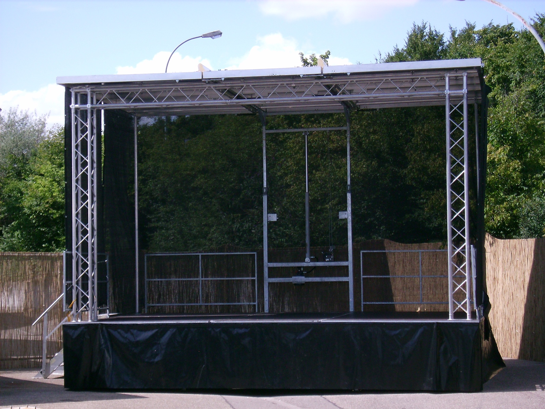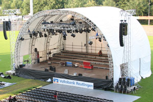 Ohne die richtige Bühne ist die beste Veranstaltung nur halb so gut. Neomy bietet schnell aufzubauende Trailer-Bühnen. Also Bühnen, die fertig auf Anhängern montiert sind und nur aufgeklappt werden müssen. Daher reduziert sich der Personal und Zeitaufwand erheblich. Es stehen die Größen 6 x 4 m (24 qm), 8 x 6 m (48qm) und 9 x 6,3 m (60 qm) zur Verfügung. Auch bieten wir Bühnenpodeste (2 x 1 m) mit diversen Füßen für Indoor- oder Outdoor-Anwendungen. Profitieren sie dabei durch unsere Erfahrungen und durch die von uns im Vorfeld durchgeführte Konzeption.